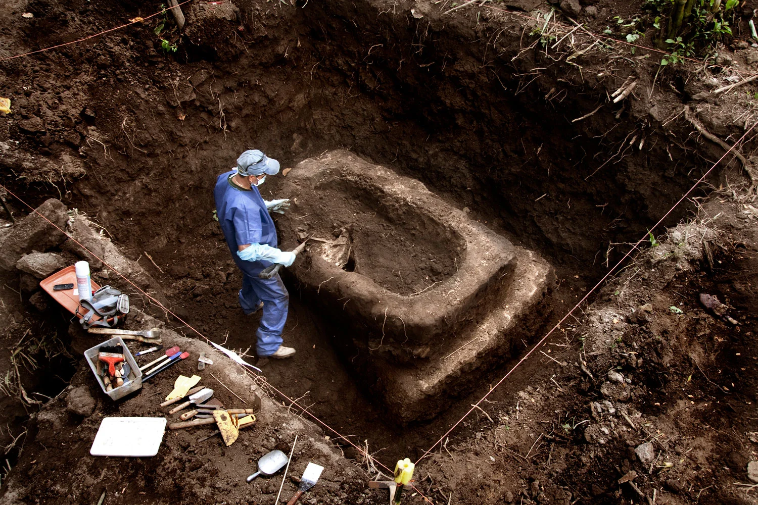 Israel Ticas rests after finishing in an excavation where an assassinated family was found.
